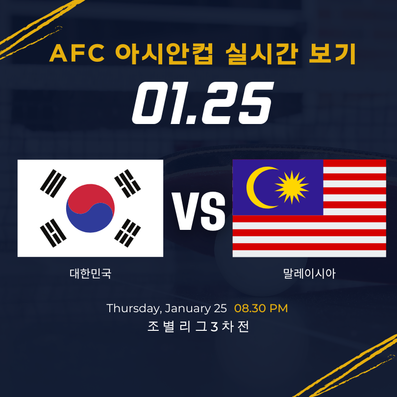 25일(목) 저녁 8시 30분 대한민국 대 말레이시아 경기 무료로 볼 수 있는 곳 소개합니다.