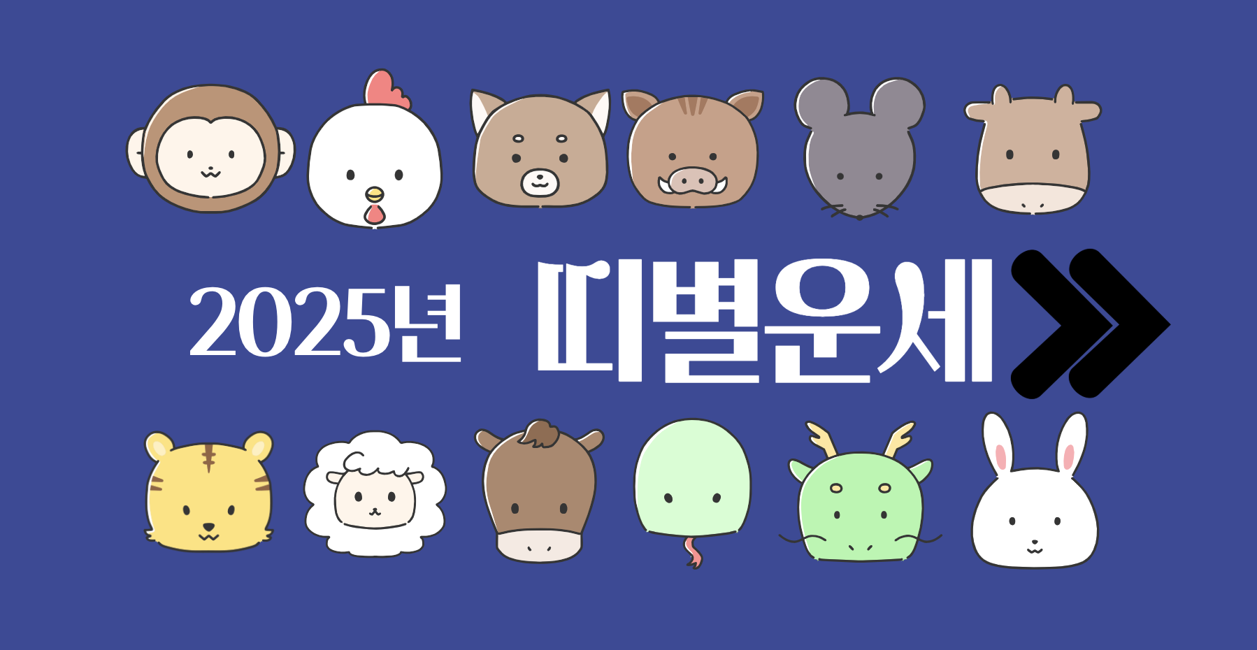2025년 을사년은 '푸른 뱀의 해'로, 각 띠별로 다양한 운세가 예상됩니다. 이번 포스팅에서는 올해 가장 운이 좋은 대박띠 TOP3와 주요 띠별 운세를 간단히 정리해보겠습니다.
